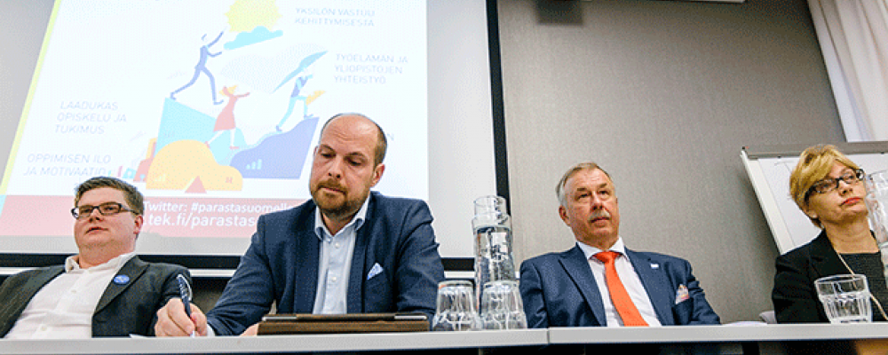 Joukko koulutusmaailman ja yhteiskunnan vaikuttajia oli kutsuttu ohjelman julkistamistilaisuuteen 6.5. keskustelemaan koulutuspolitiikan linjauksista.