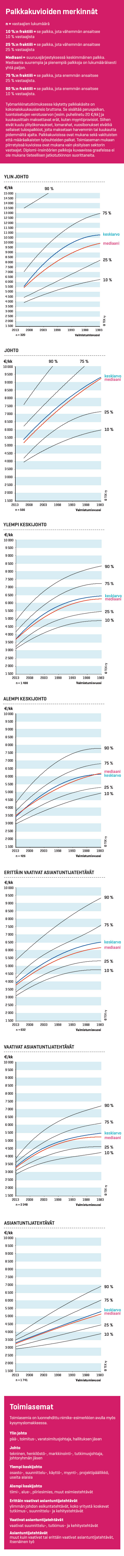 Ammattivuosien määrää kuvaa ylemmän korkeakoulututkinnon (diplomi-insinööri, arkkitehti tai maisteri) valmistumisesta kulunut aika. Lisävuosi tuo keskimäärin 2,5 prosenttia lisää palkkaa, mutta nousu on kiivaampaa uran alussa ja hiipuu loppua kohti (-3,7 % / 10 vuotta).