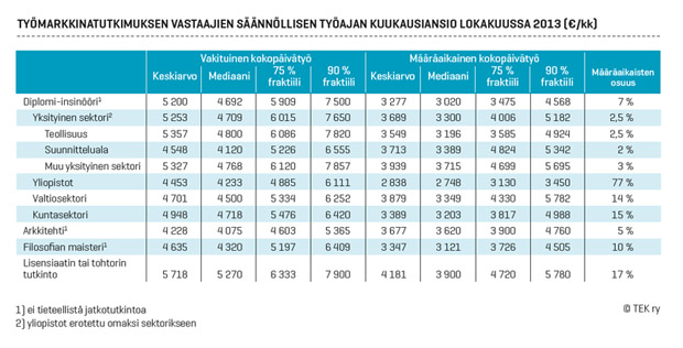 TEKin lokakuisen työmarkkinatutkimuksen tuloksista rakennettu palkkamalli selittää peräti 74 prosenttia palkkojen vaihtelusta.