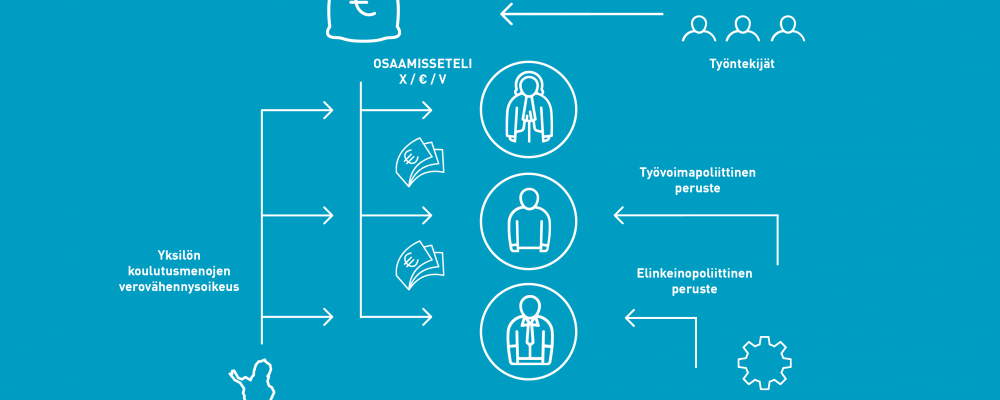 Setelin lisäksi myös työvoimaviranomainen voisi ohjata varoja osaamistilille. Perusteena olisi joko yksilön koulutustarve tai tarve vastata jonkin alueen tai toimialan osaamistarpeisiin. Mallia täydentäisi yksilön oikeus vähentää koulutuskuluja verotuksessa.