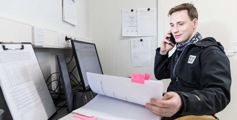 Taustalta kuuluva kolina paljastaa, että katsastusalan yrittäjä Anton Pendikainen, 27, ei vastaa puhelimeen toimiston perukoilta. Yrittäjää on tarvittu avuksi, sillä autoja on katsastettavana jonoksi asti.