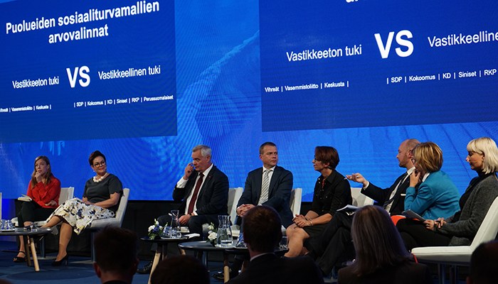Puolueiden puheenjohtajien paneelissa ennakoitiin puolestaan ensi vaalikauden sosiaaliturvauudistusta.