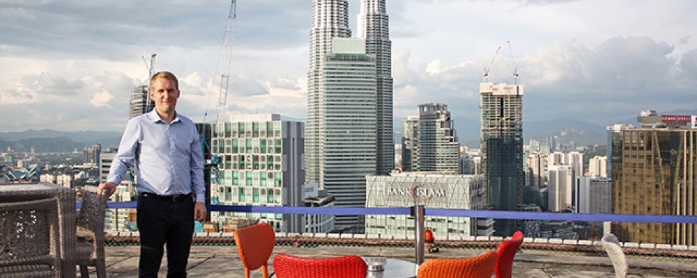 Juho Kujanpää työskentelee kolmatta vuotta helteisessä Kuala Lumpurissa. – Saan alaani toisenlaisen näkökulman, hän kehuu työnsä kansainvälistä ilmapiiriä.
